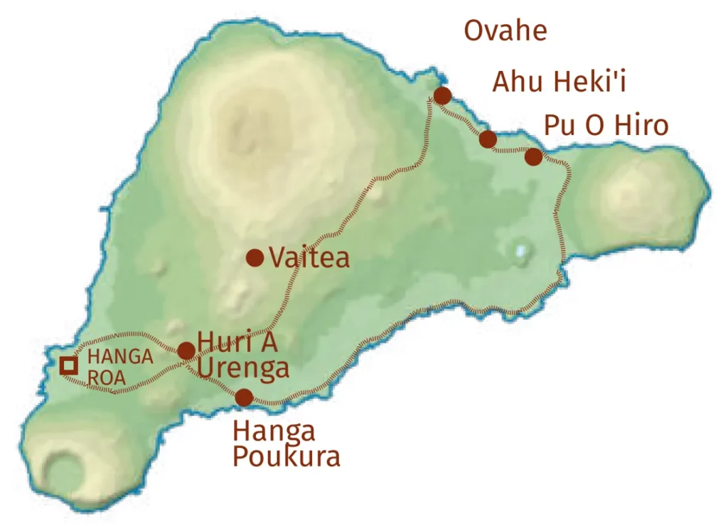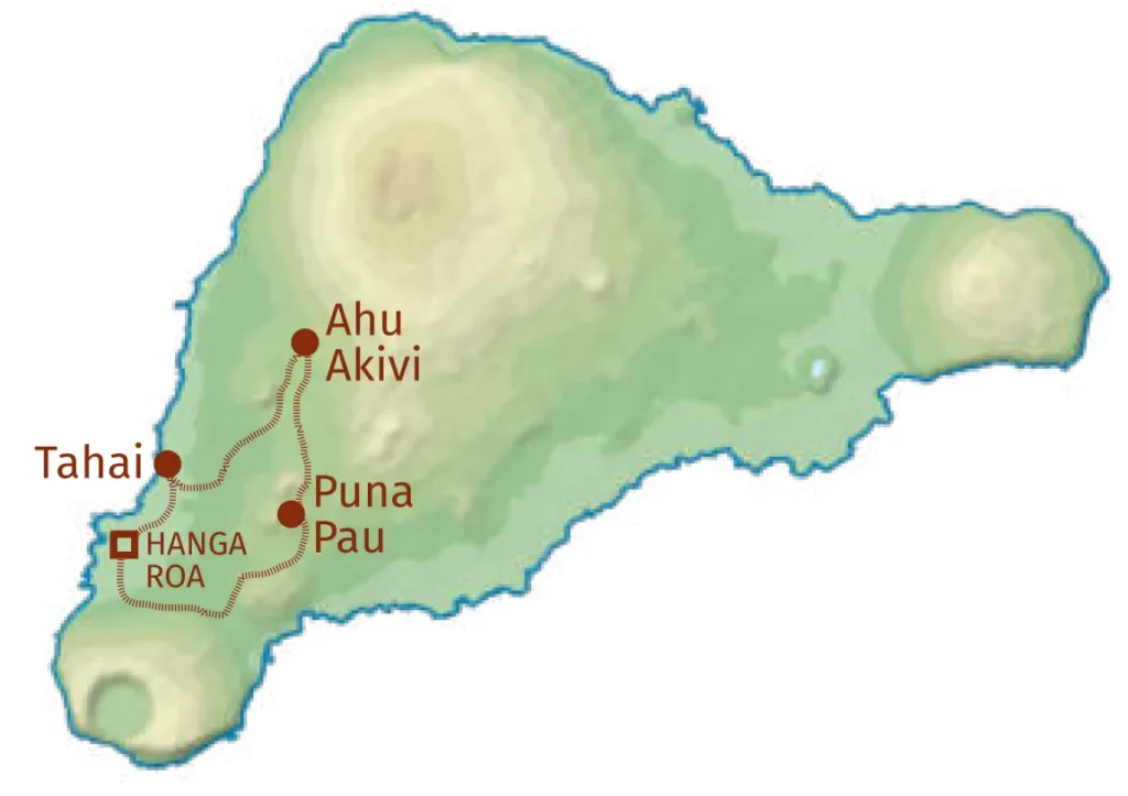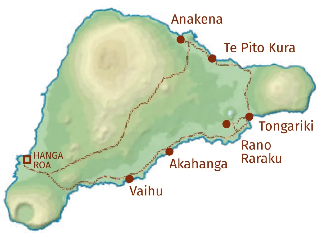 - TE PITO KURA — El moai erguido más grande que estuvo en pie; “ombligo del mundo” cercano.