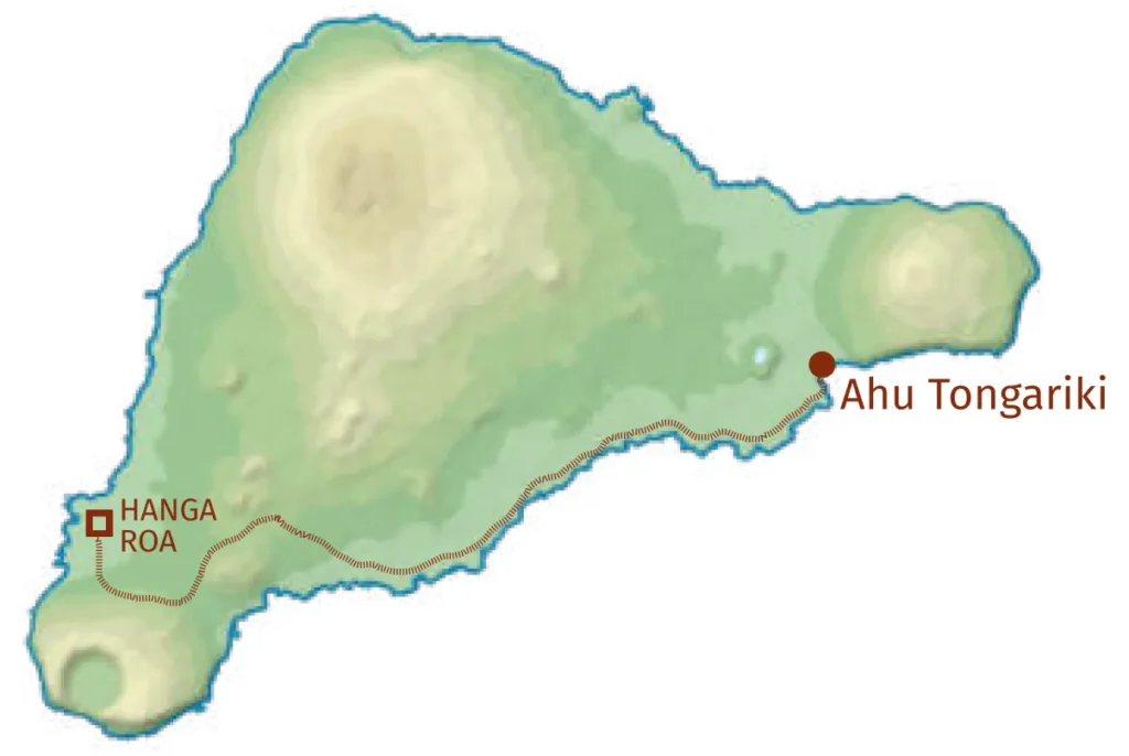 Desde el pueblo se llega en unos 45 minutos de marcha calmada, antes del amanecer para disfrutar los cambios de color del cielo mientras el sol sale detrás de los 15 moai, la plataforma más grande de la isla. Ocasión extraordinaria para disfrutar del paisaje en movimiento y los cambios de luz característicos del paisaje isleño.