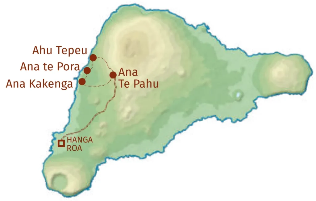 - Circuito de Cuevas (tubos de lava como Ana Te Pahu, Ana Kakenga, etc.).